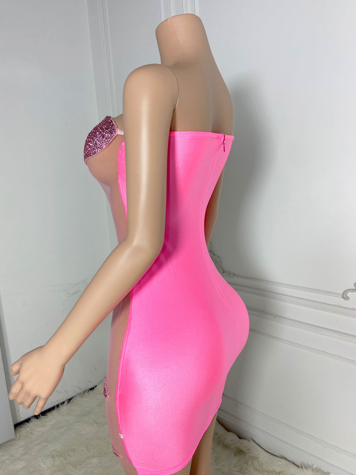 Pink Sheer Zippered Dress