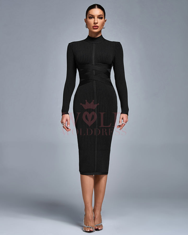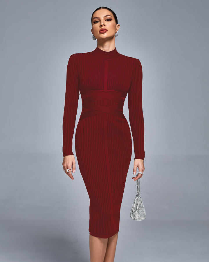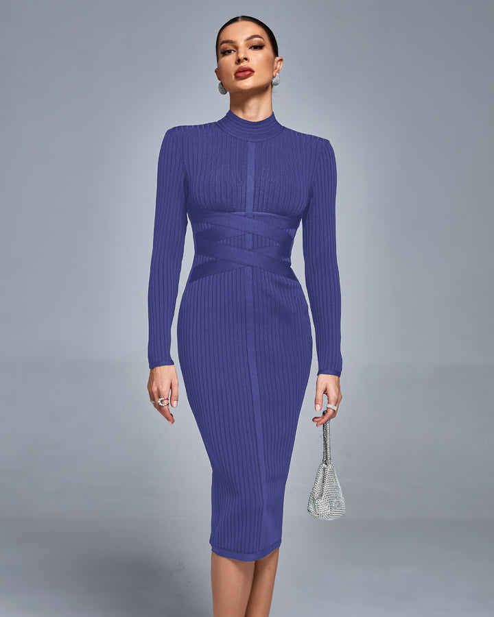 Classic Cross Ribbed Bandage Midi Dress