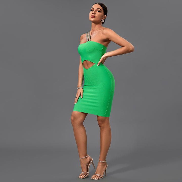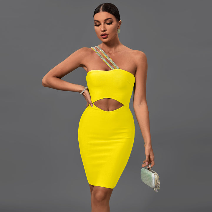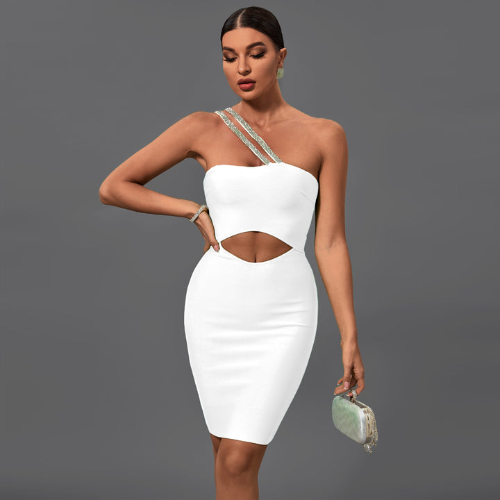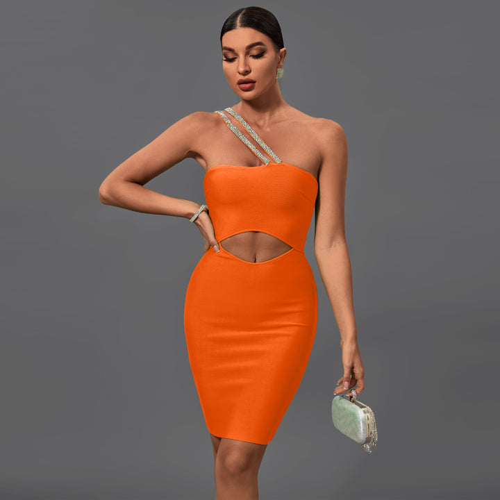 This beautiful and modern midi dress is perfect for any evening event. Featuring a stunning one shoulder silhouette with a cut out detail, it is sure to turn heads. Whether you are looking to make a statement or just want to feel comfortable and beautiful, this dress is the perfect choice.