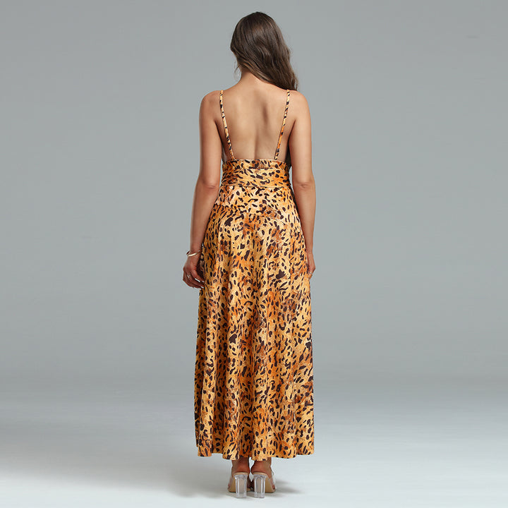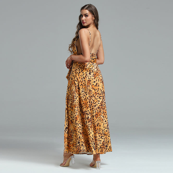 Unleash your wild side with this bold and daring strappy leopard print maxi dress! Featuring an adjustable belt and sultry straps, this dress is perfect for an adventure-filled night out. Make a statement and own the night!