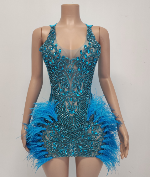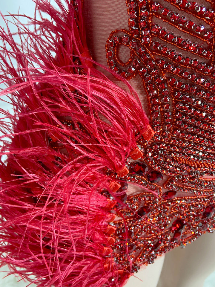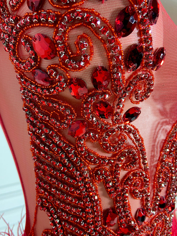 Red Stunner Feather Mini Dress
