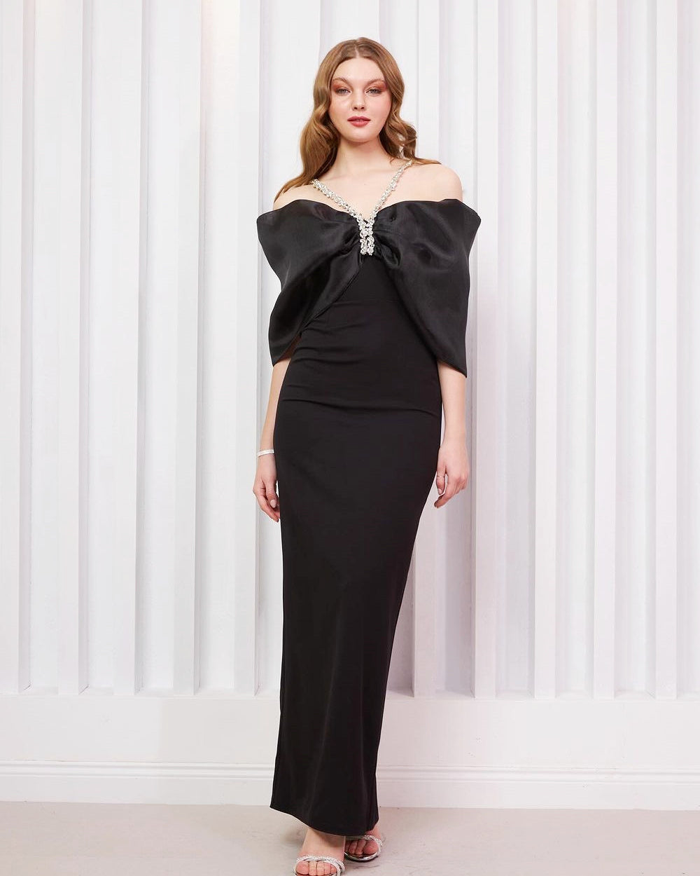 Crystal Chain Detail Off Shoulder Maxi Dress