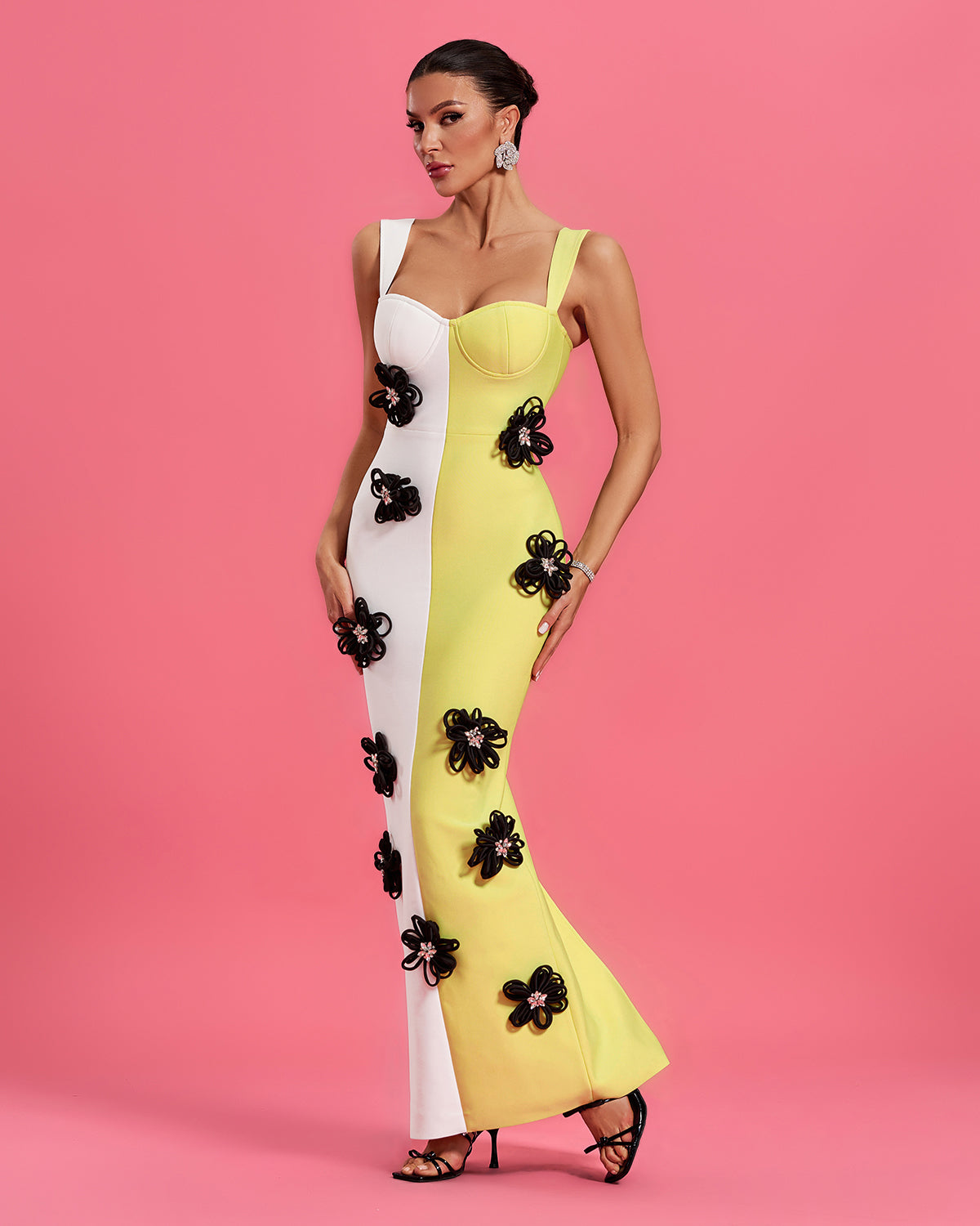 Floral Applique Colorblock Bandage Dress