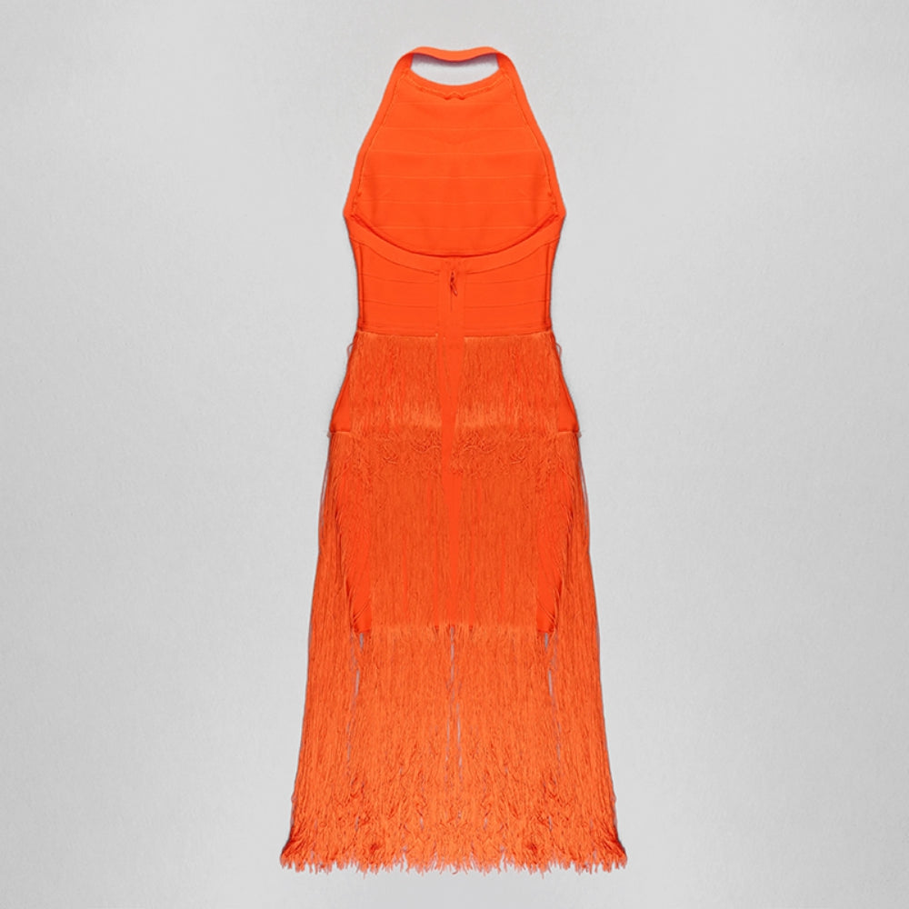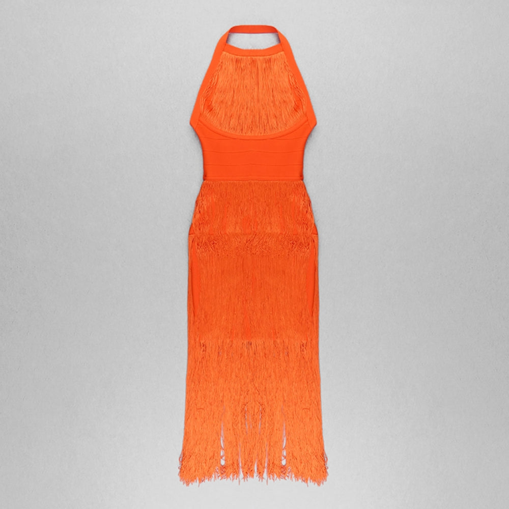 Halter Sleeveless Tassels Midi Bandage Dress SW6584
