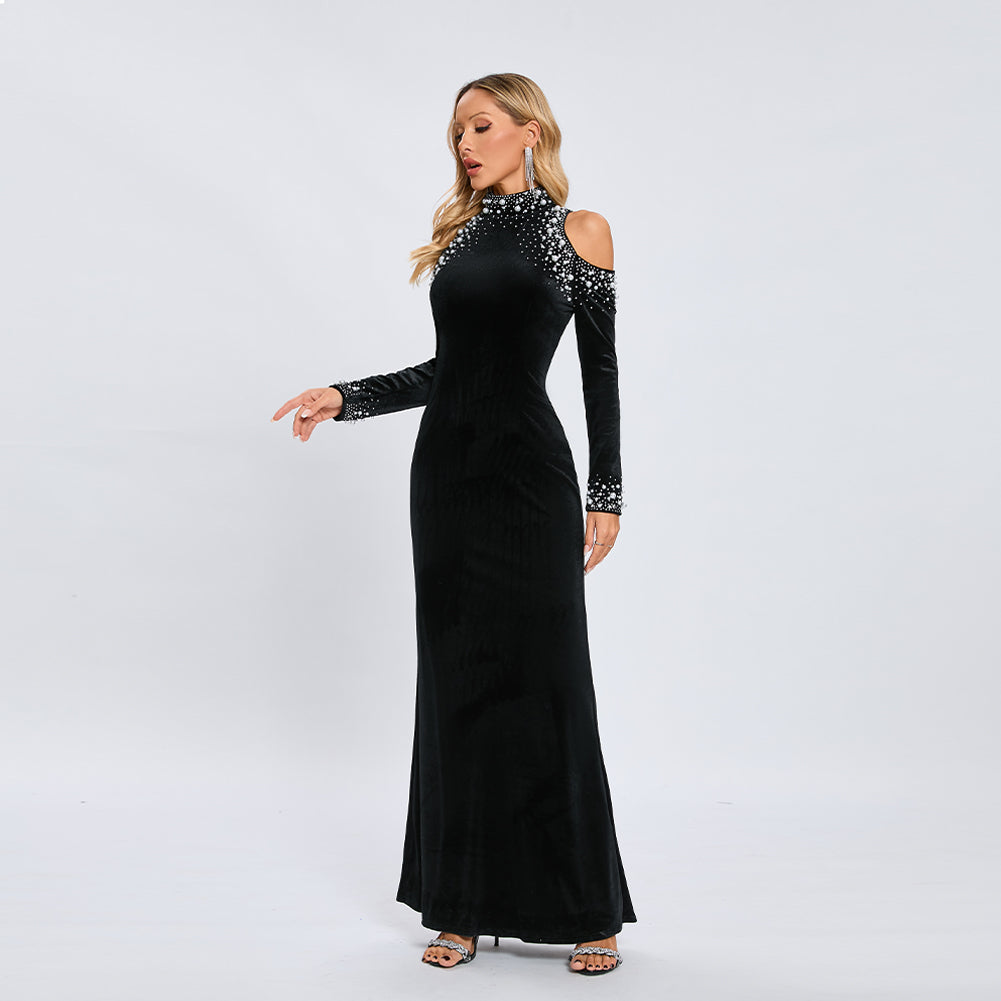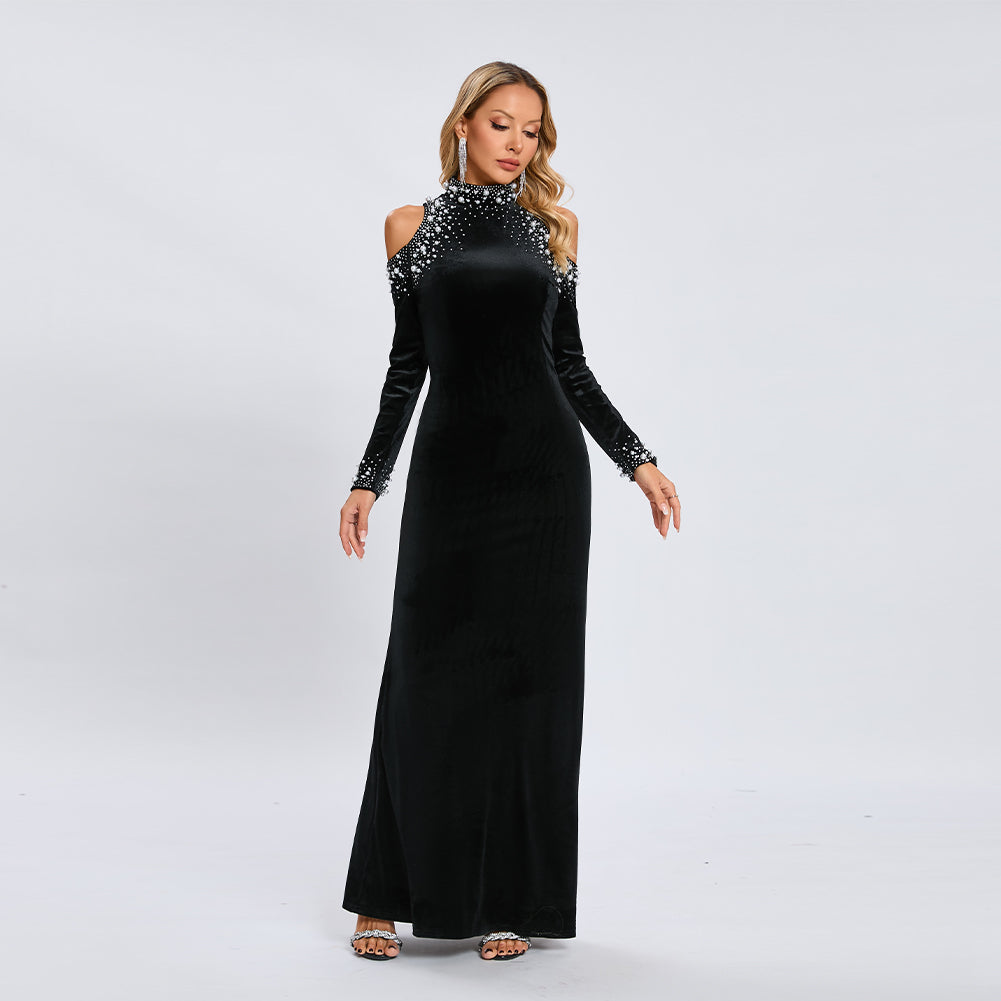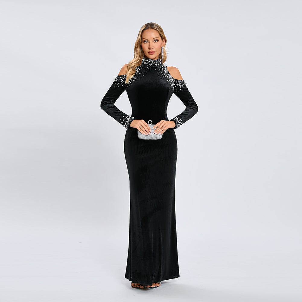 High Neck Long Sleeve Elegant Maxi Dress KLYF1364