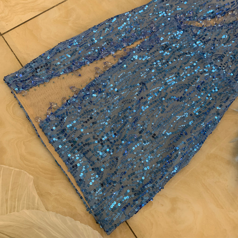 High Neck Long Sleeve Sequins Mini Bodycon Dress HT896