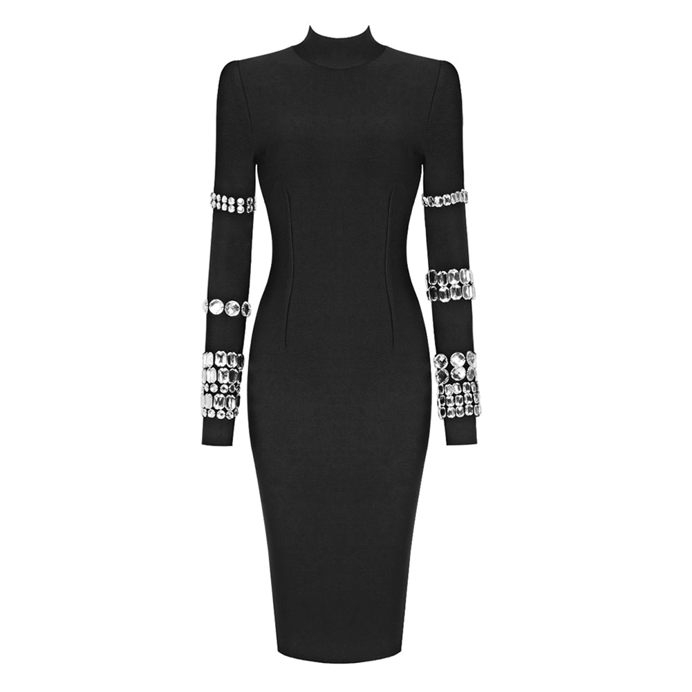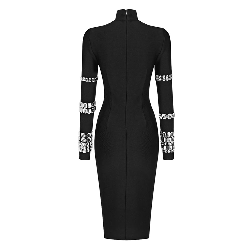 High Neck Nail Bit Over Knee Bandage Dress BD2458