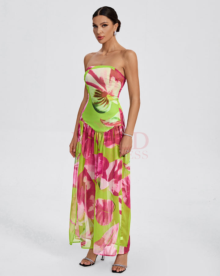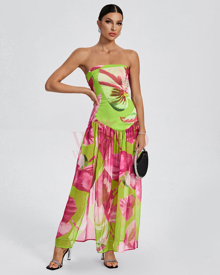 This Strapless Long Pucker Dress is the perfect option for those who want to make a statement. Its high split and strapless design embodies a feeling of sophistication and femininity. The lightweight, breathable fabric is ideal for all seasons, making it a versatile choice for any occasion.