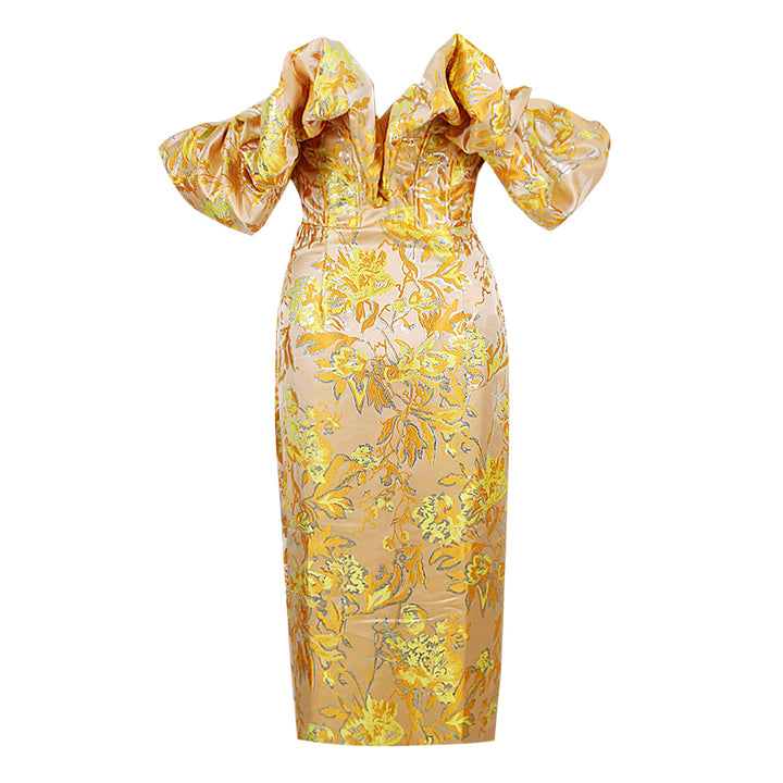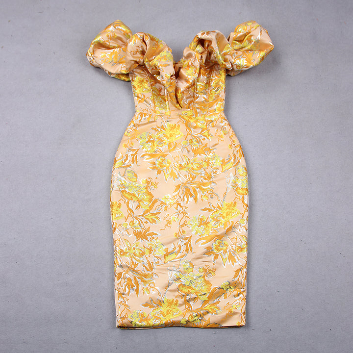 Off Shoulder Pleated Midi Backless Bodycon Dress