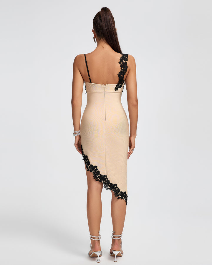 Irregular Lace-trim Midi Bandage Dress