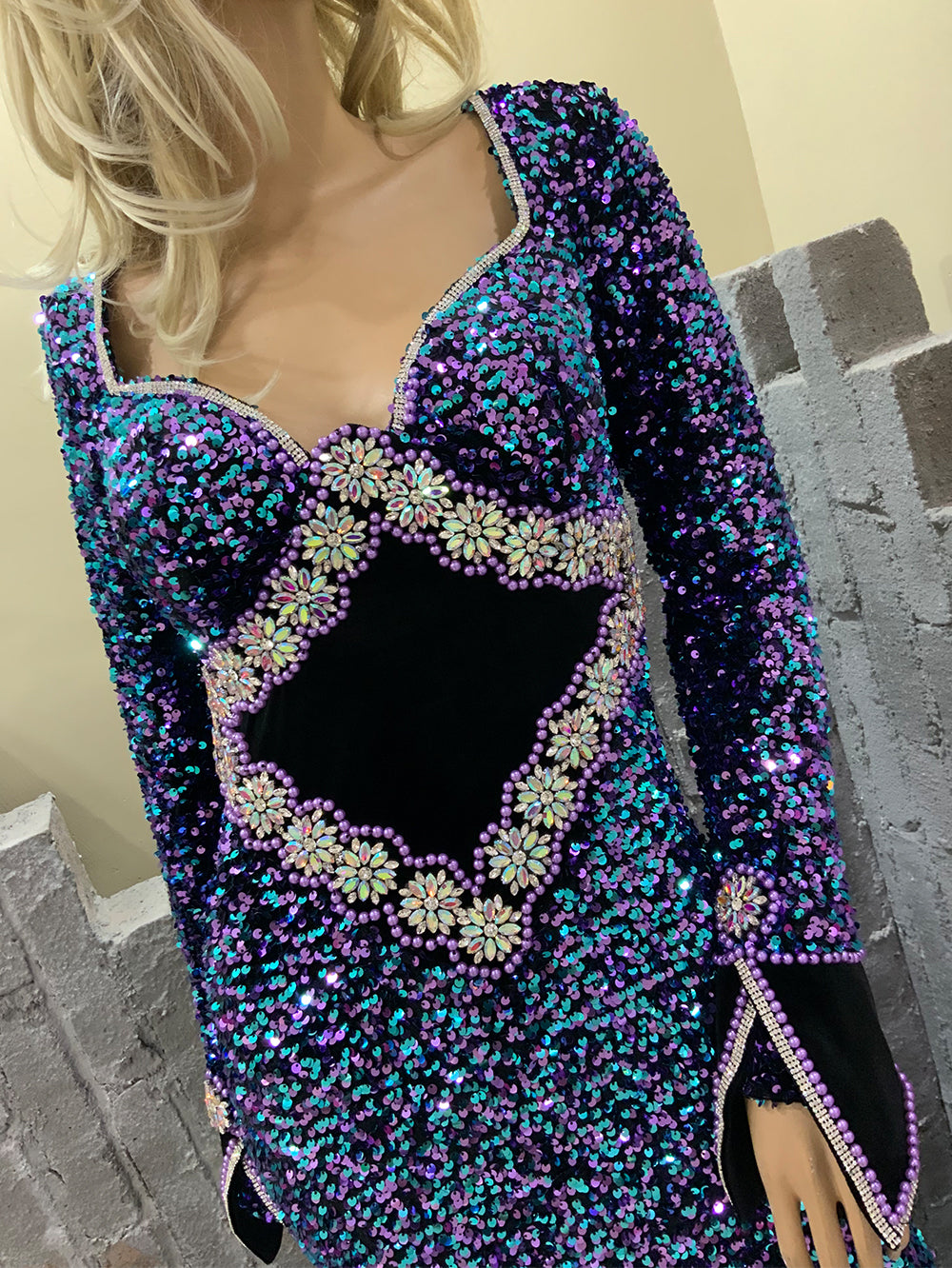 Custom beadwork elevates this outfit, making it a dazzling choice for special occasions or standout moments.
