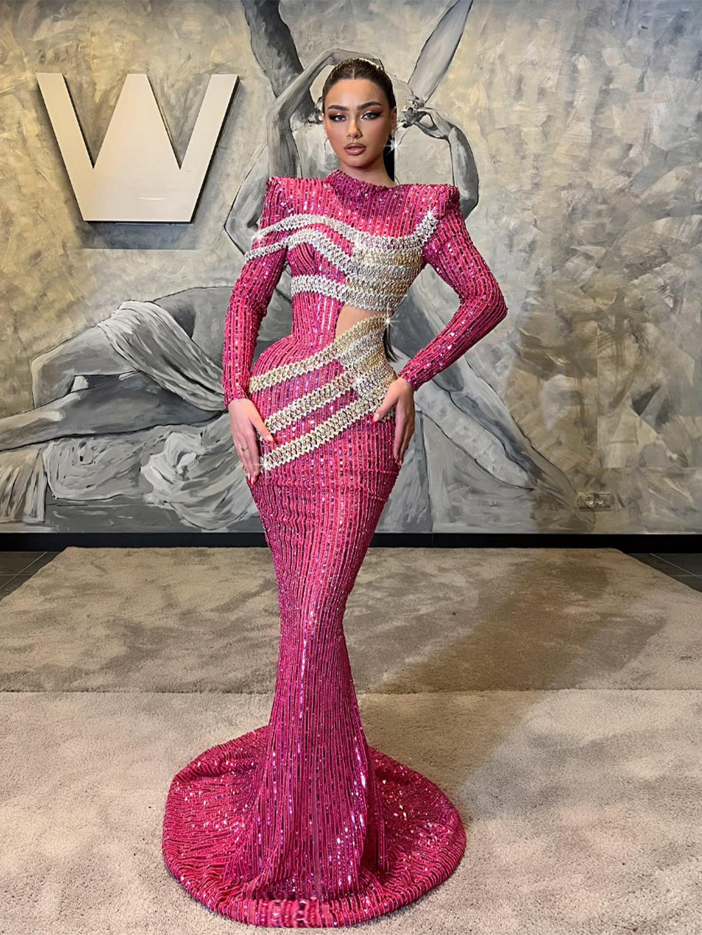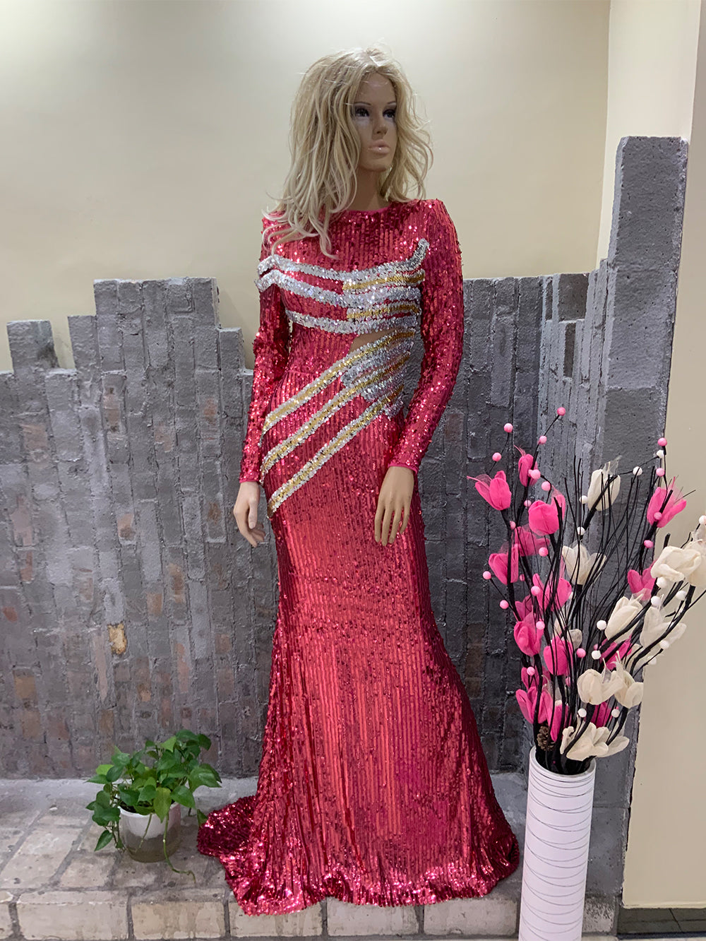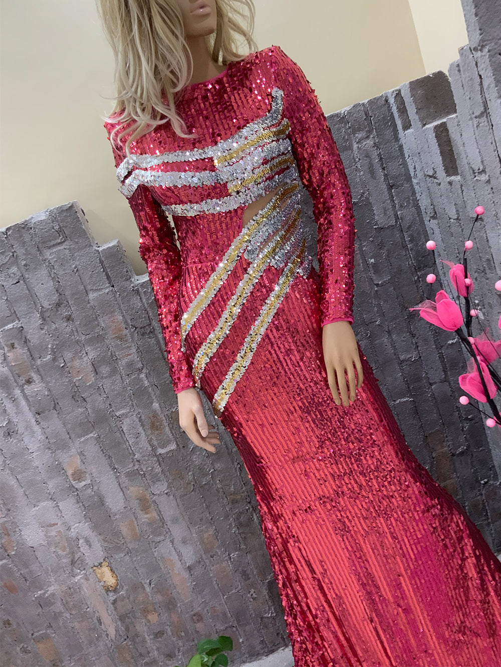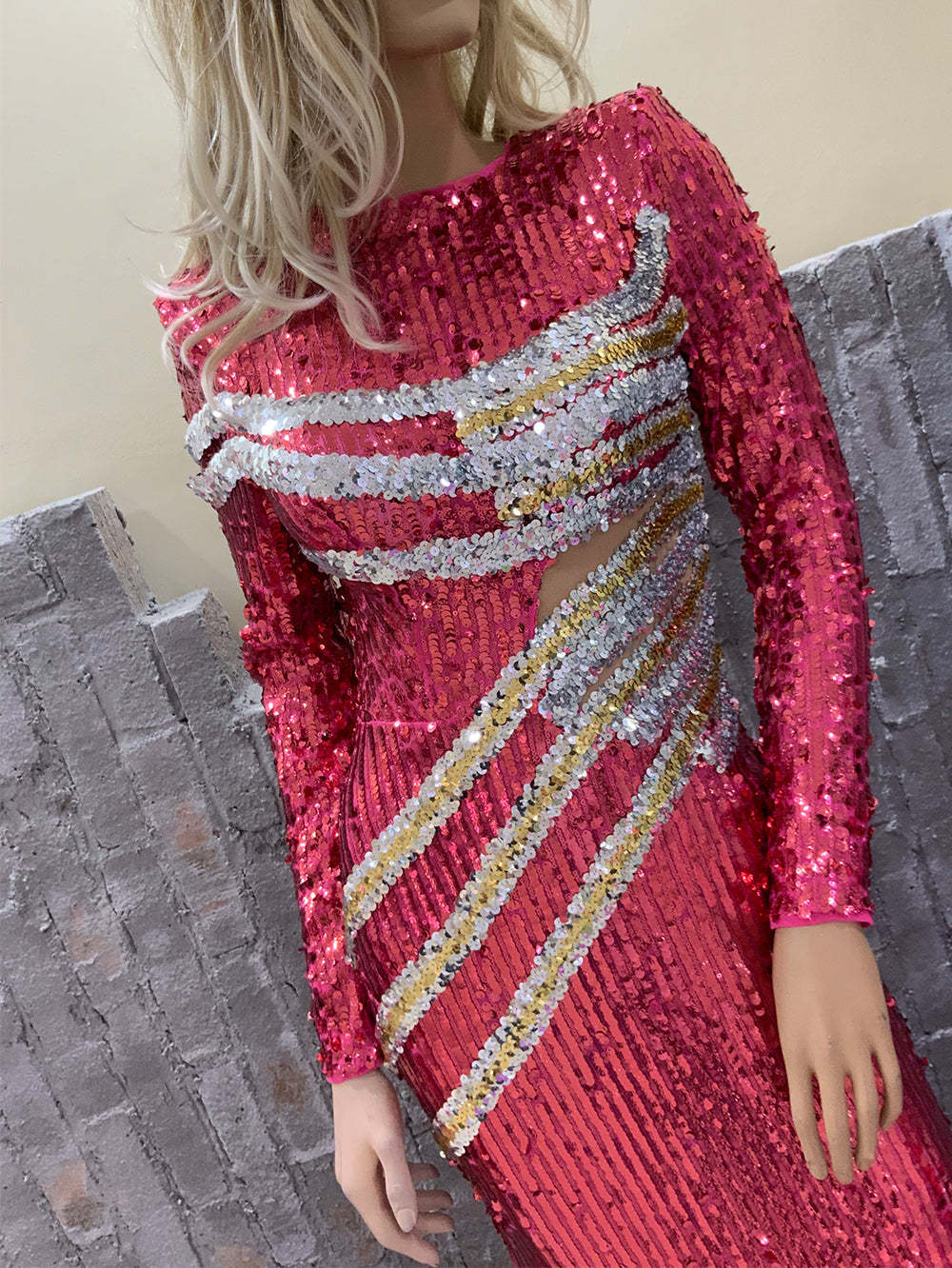 Long Sleeve Sequins Maxi Bodycon Dress HT20320