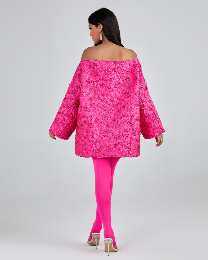Off Shoulder Jacquard Loose Fitting Dress