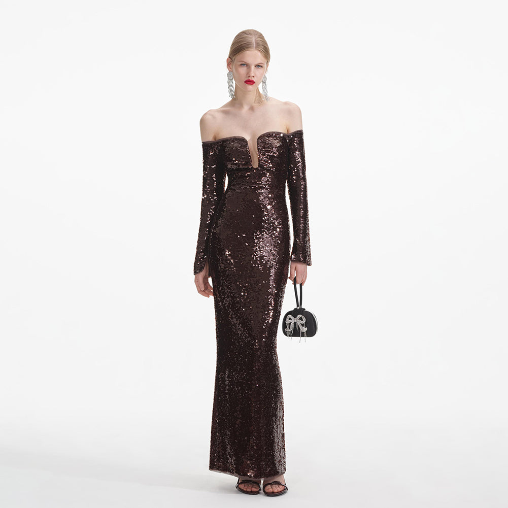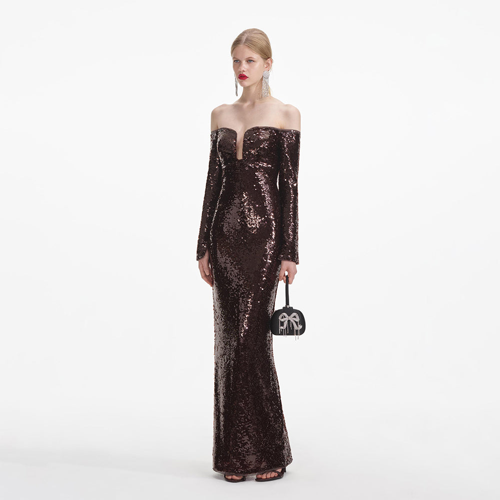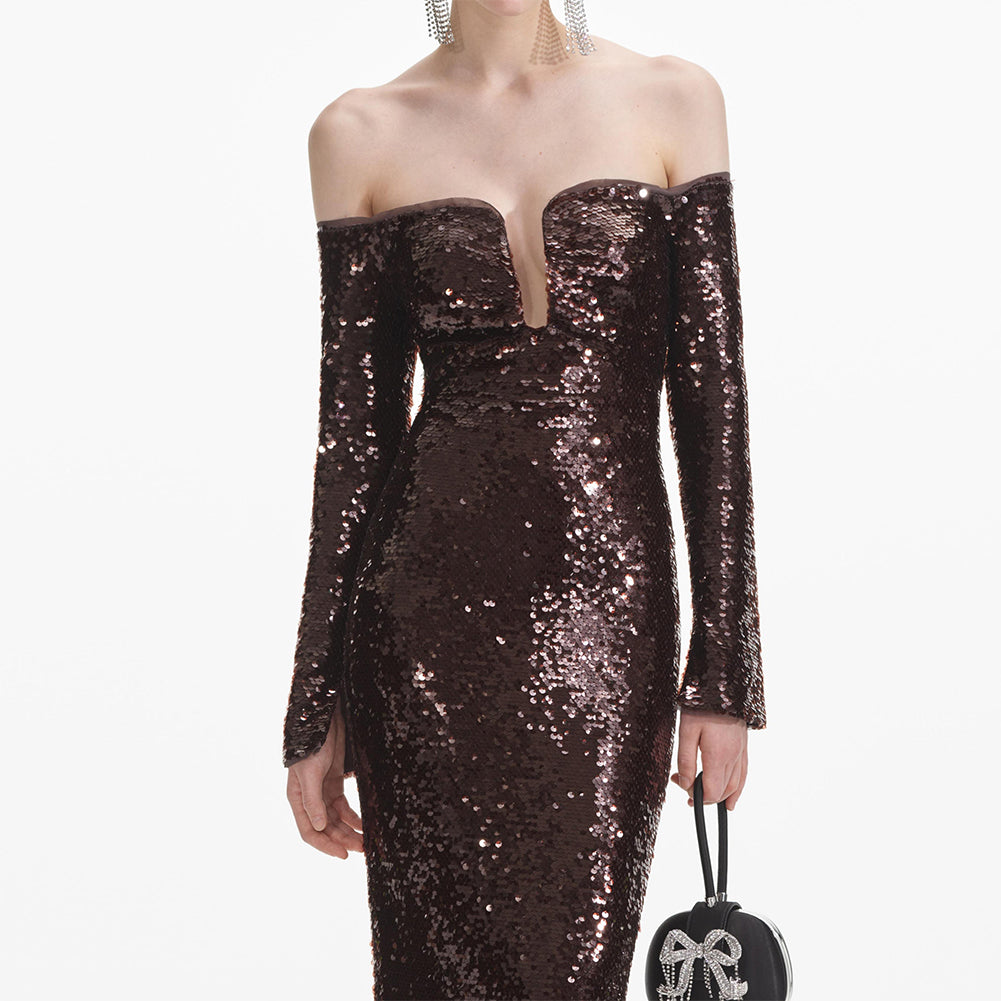 Off Shoulder Long Sleeve Sequins Maxi Dress KLYF1357