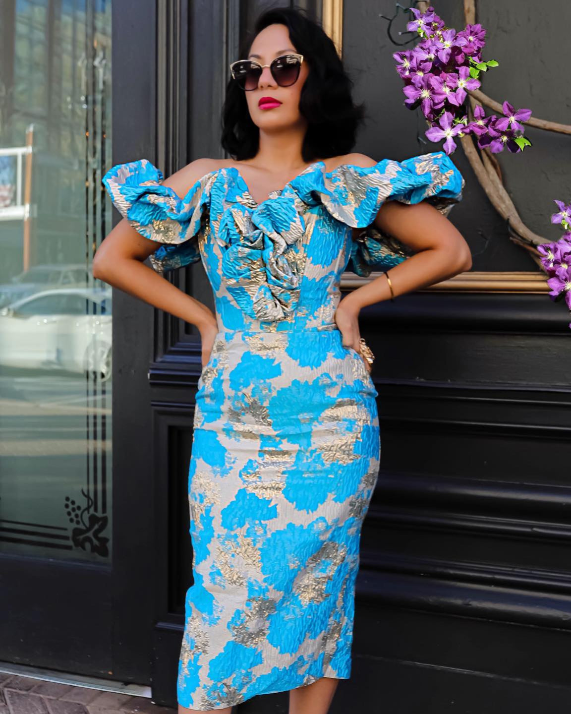 Off Shoulder Pleated Midi Backless Bodycon Dress