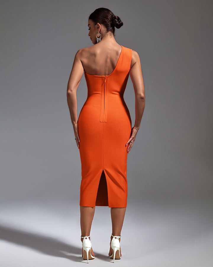 Showcase your best assets in this stunning One Shoulder Sleeveless Midi Bandage Dress. Constructed from comfortable, lightweight fabric, the dress features an asymmetrical one-shoulder neckline and midi length for a timeless, elegant look that will surely turn heads. A perfect choice for special occasions or a night out, this dress exudes a style of sophistication and exclusivity.