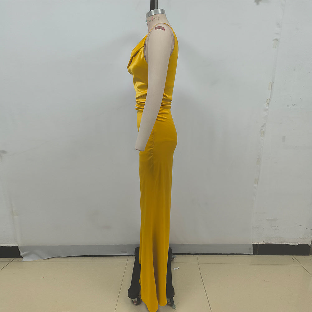 One Shoulder Sleeveless Plain Maxi Dress KLYS020