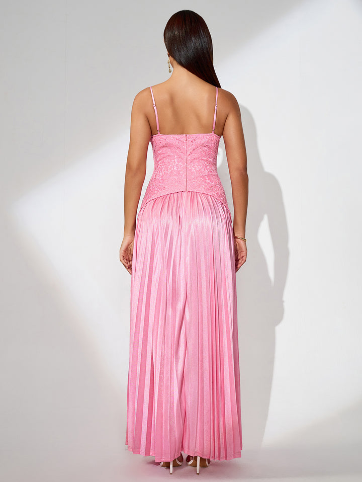 Chic and playful, the Open Back Pleated Lace Maxi Dress is designed for standout nights, a must-have in your midi dresses for women collection.