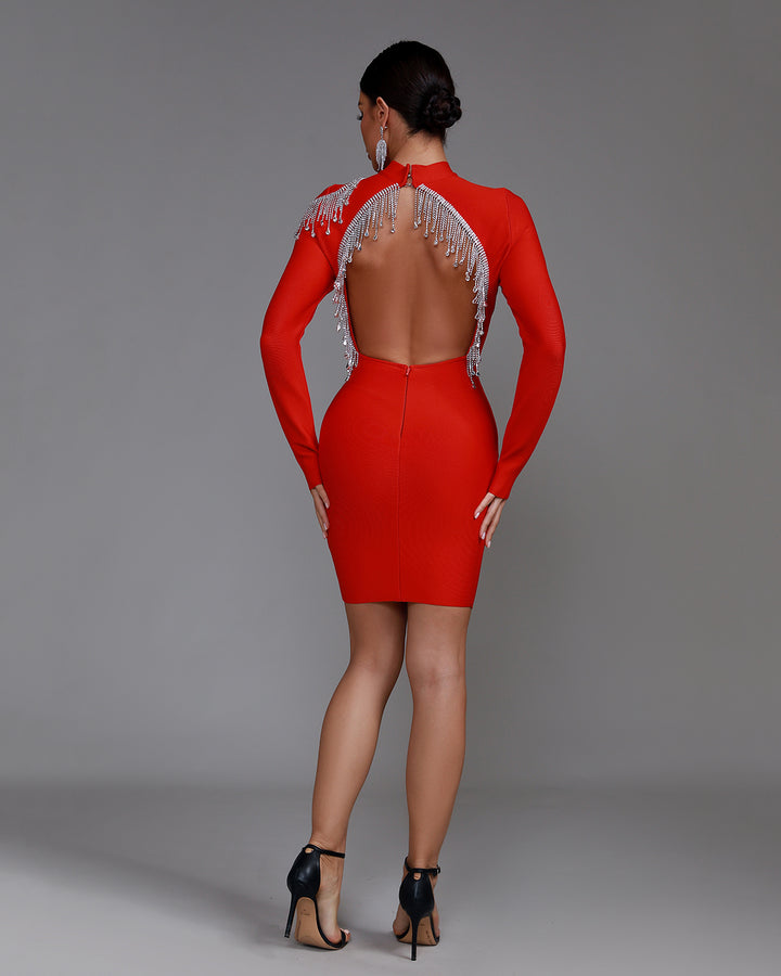 Rhinestone Fringe Backless Bandage Dress