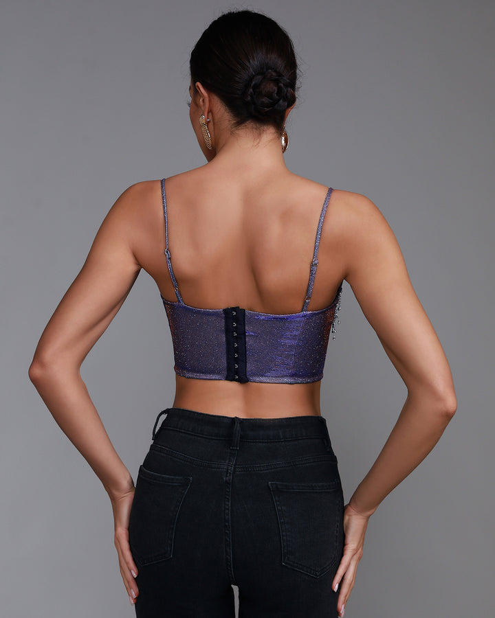 Elevate your look with this Rhinestone Tassels Strap Top! Featuring an eye-catching rhinestone tassels design, this stunning top can take any look to the next level. Add some serious sparkle to your collection and make a bold statement with this gorgeous top. Get ready to shine!