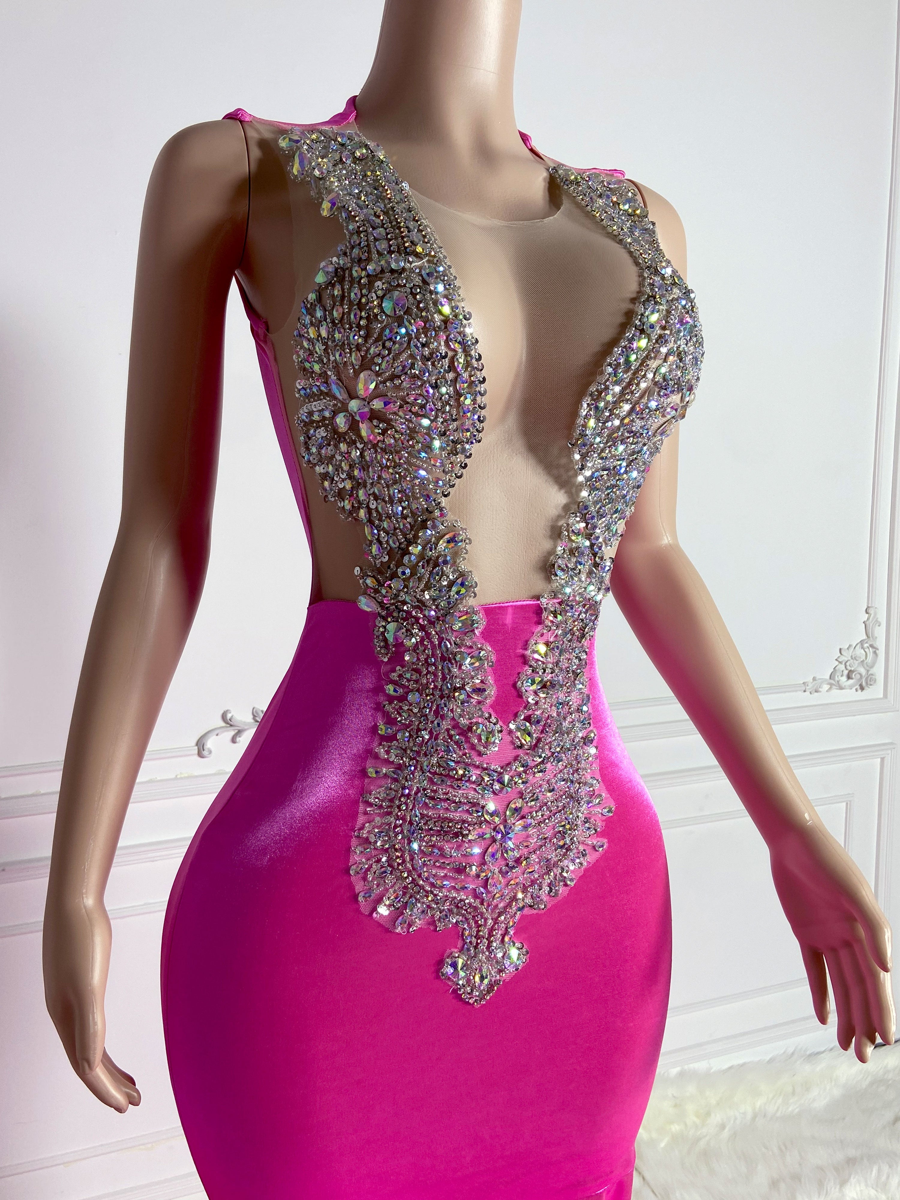 Rosy Sheer Elegance Maxi Gown