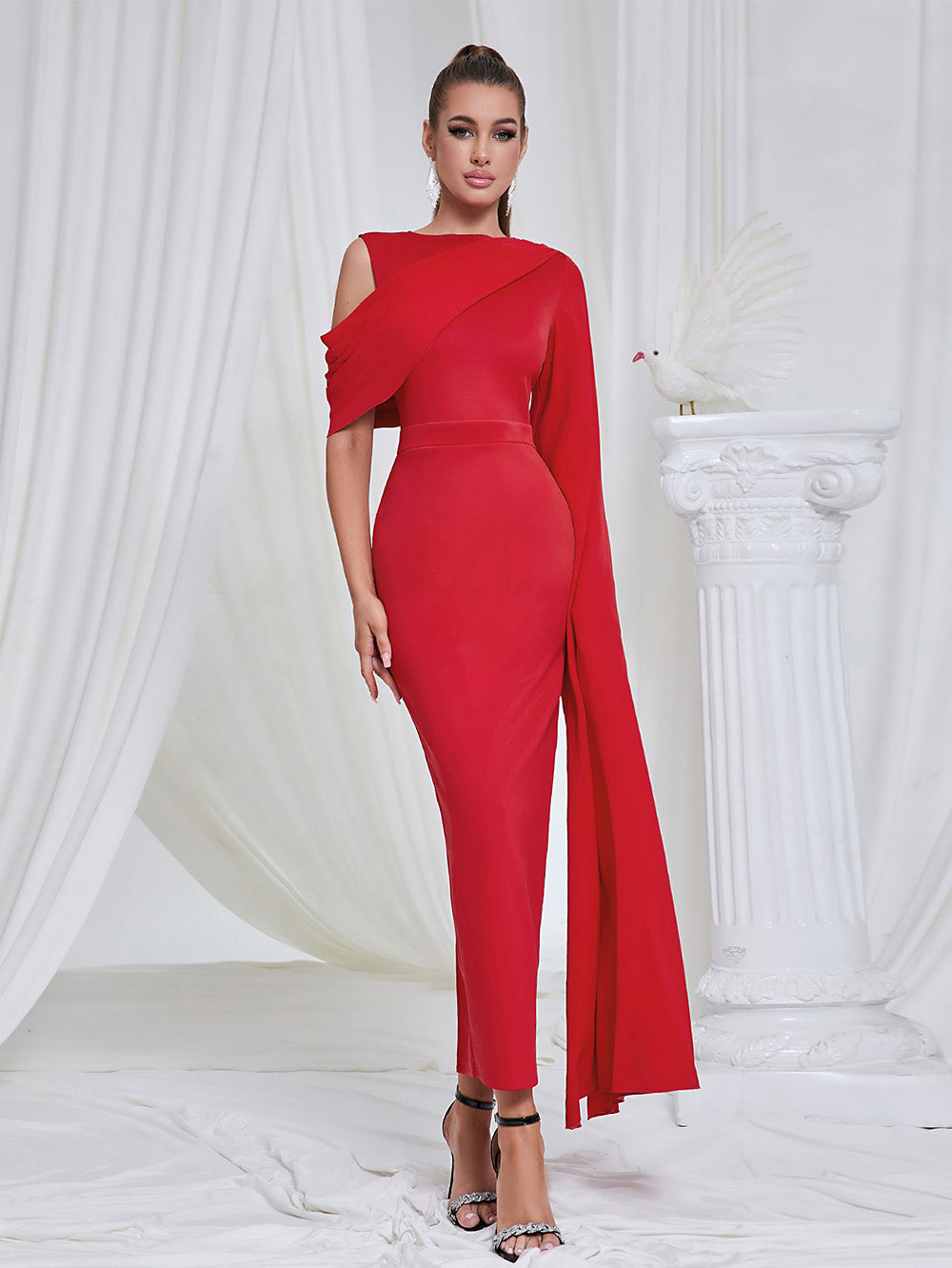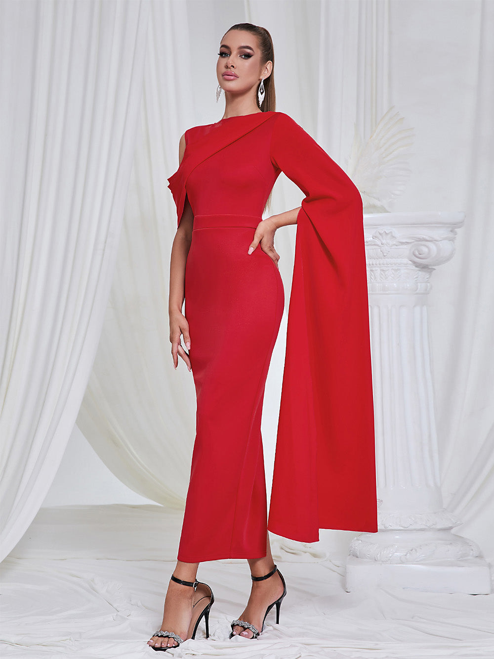 Round Neck Exaggerated Sleeve Maxi Bodycon Dress HB10146