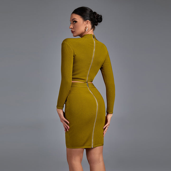 Be bold and daring with this Round Neck Long Sleeve Simpleness Mini Bandage Set! Show off your fearless side with this comfortable, sleek, and stylish set. Conquer the night in confidence and make your mark. Dare to be different!