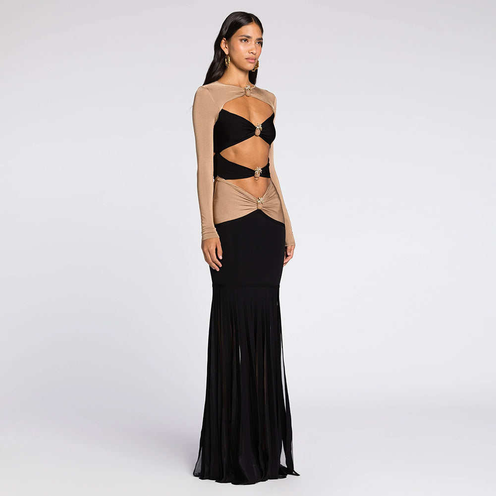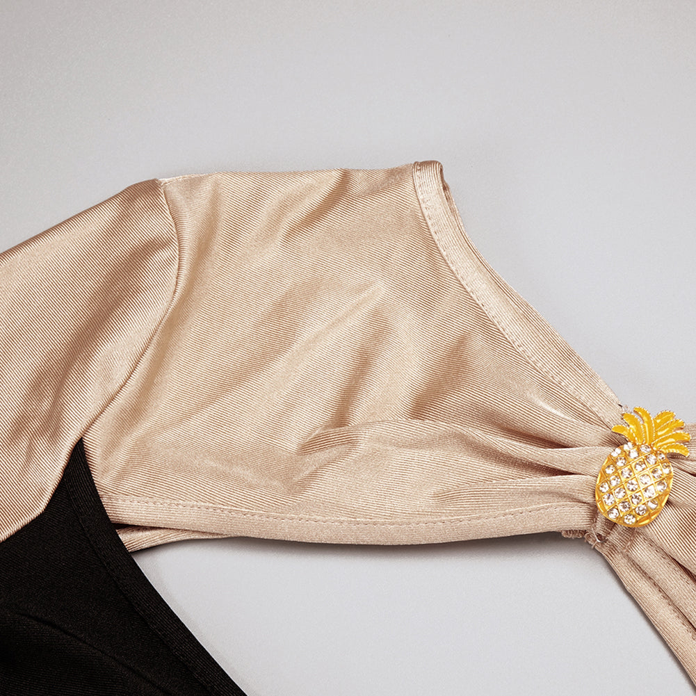 Embellished with an intricate pineapple decoration, this round neck maxi bodycon dress is sure to make a sophisticated and refined addition to your wardrobe. Crafted from luxurious materials, it’s perfect for special occasions or nights out. The timeless design exudes elegance.