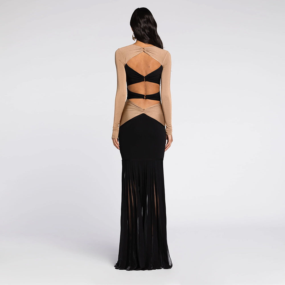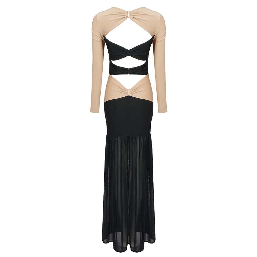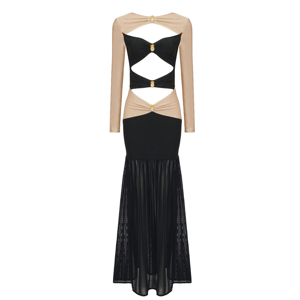 Round Neck Pineapple Decoration Maxi Bodycon Dress BD2444