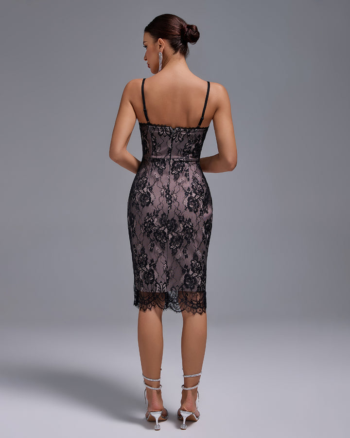 Turn heads in this seductive Sexy Lace Strappy Midi Bandage Dress. With its delicate lace and chic strappy design, this dress exudes confidence and elegance. Perfect for a night out or a special occasion, it will make you feel sexy and beautiful. Feel confident and stand out in this stunning dress.