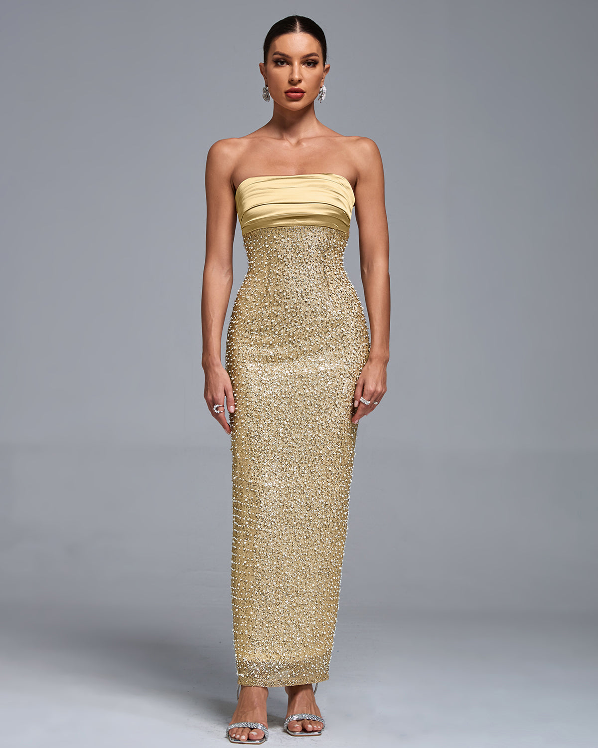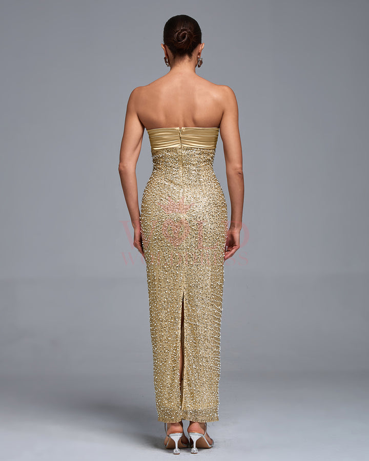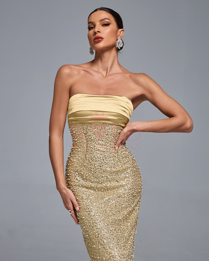 Strapless Sequin Pearl Embellished Tube Dress