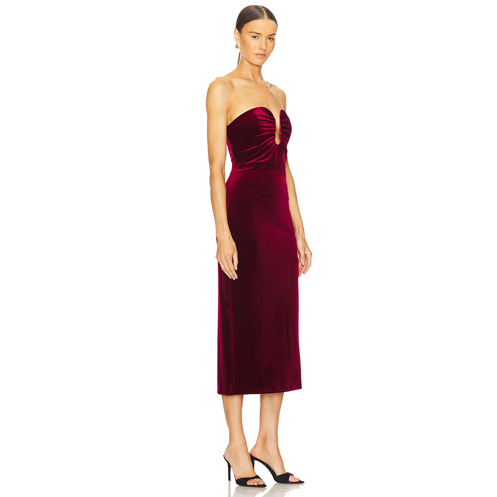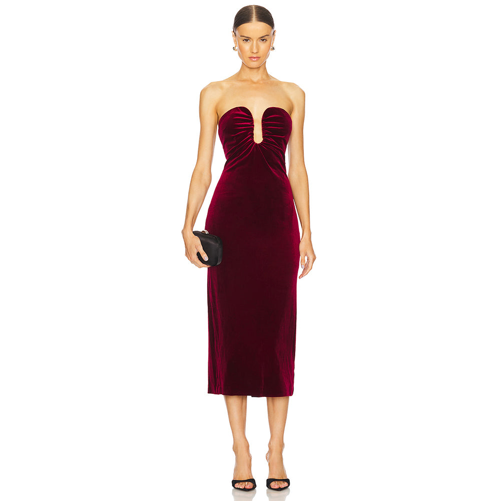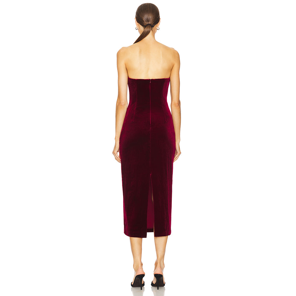Strapless Sleeveless Plain Midi Dress KLYS023