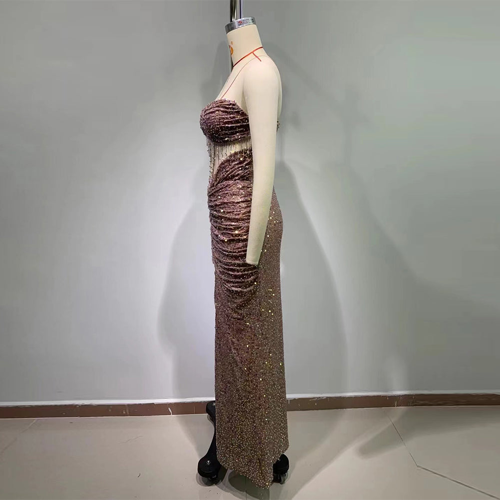 Strapless Sleeveless Ruched Maxi Bodycon Dress HT20410