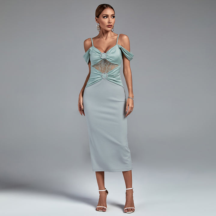 Introducing the Strappy Buckled Lace and Satin Midi Dress, an exquisite piece of craftsmanship that blends sophistication and femininity. Featuring a timeless combination of lace and satin with delicate strappy buckles, this elegant dress promises to turn heads whatever the occasion. Make a statement of elegance and taste with this timeless midi dress.