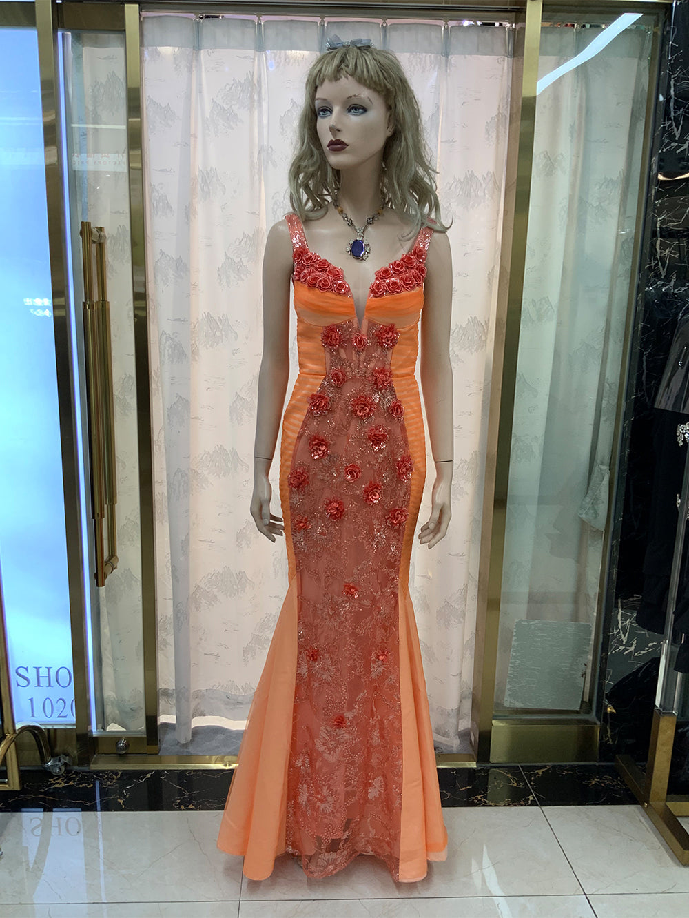 Strappy Sleeveless Embroidery Flowers Maxi Bodycon Dress HT21260