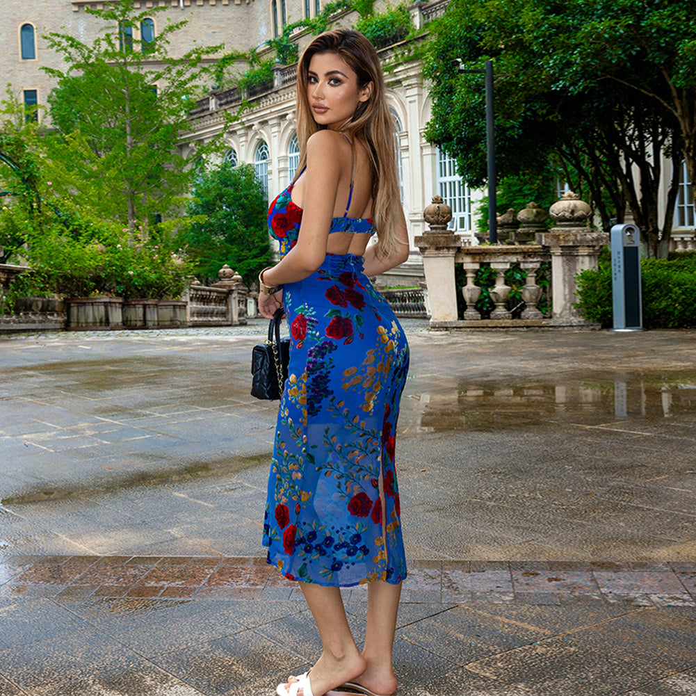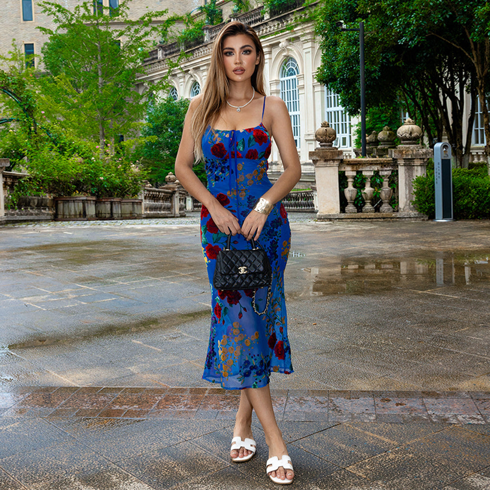 Strappy Sleeveless Floral Midi Dress KLYF1242