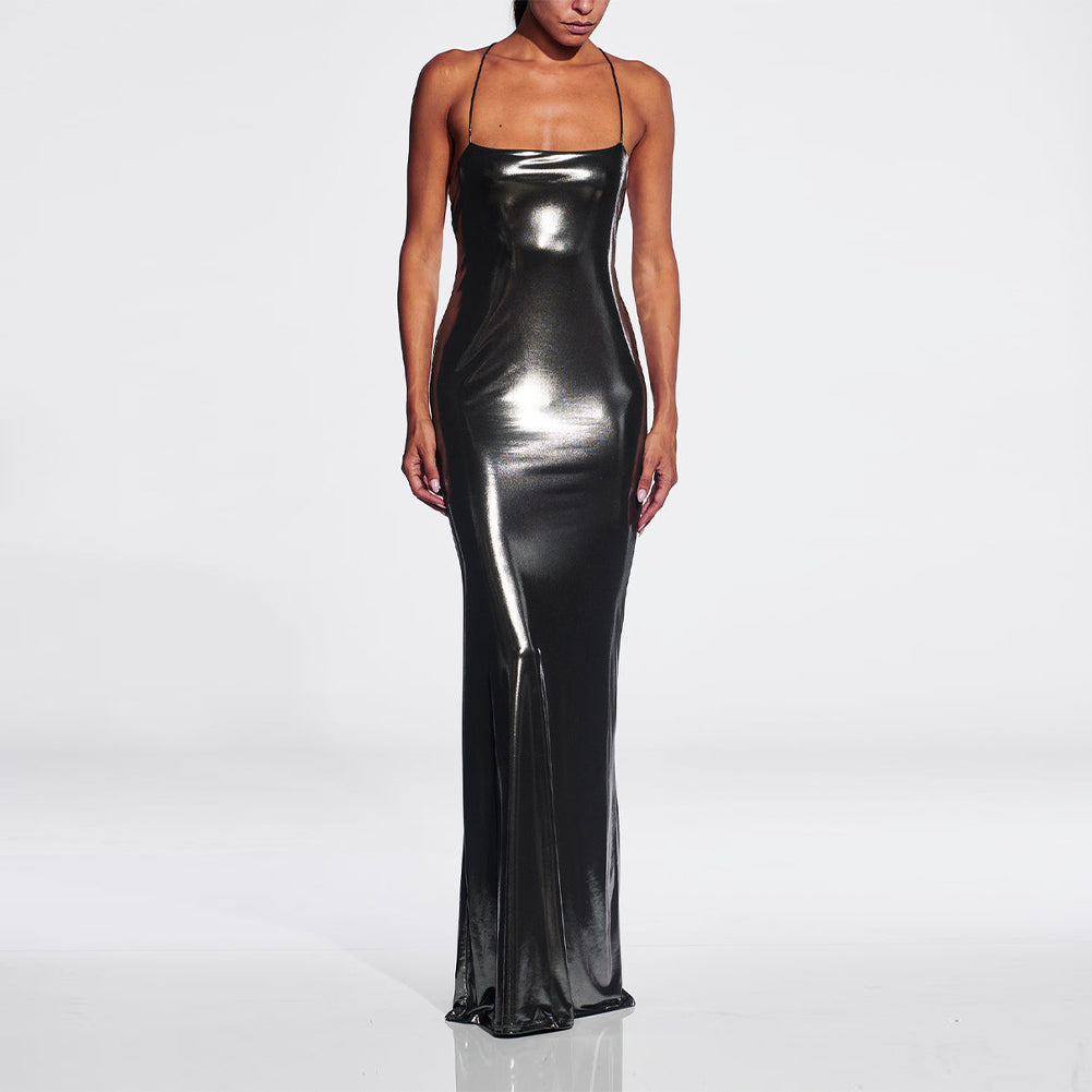 Strappy Sleeveless Glossy Maxi Dress KLYS019