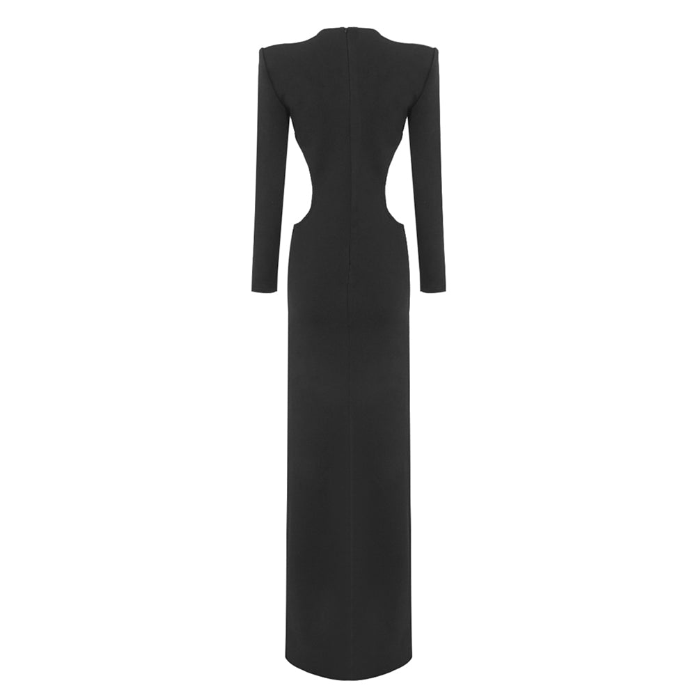 V Neck Hollow Out Maxi Bodycon Dress BD2445