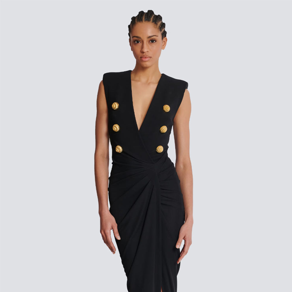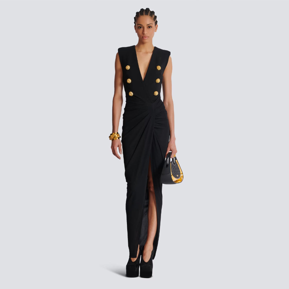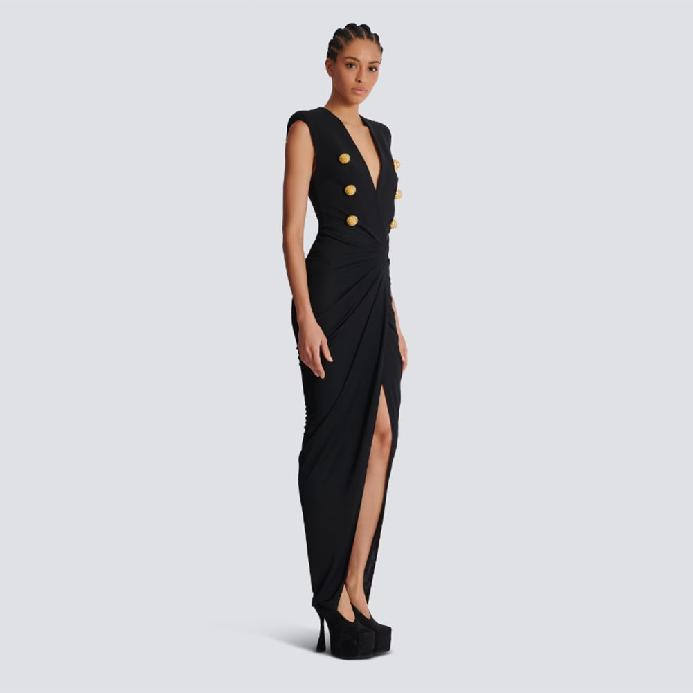 V Neck Sleeveless Low Cut Maxi Dress KLYF1393