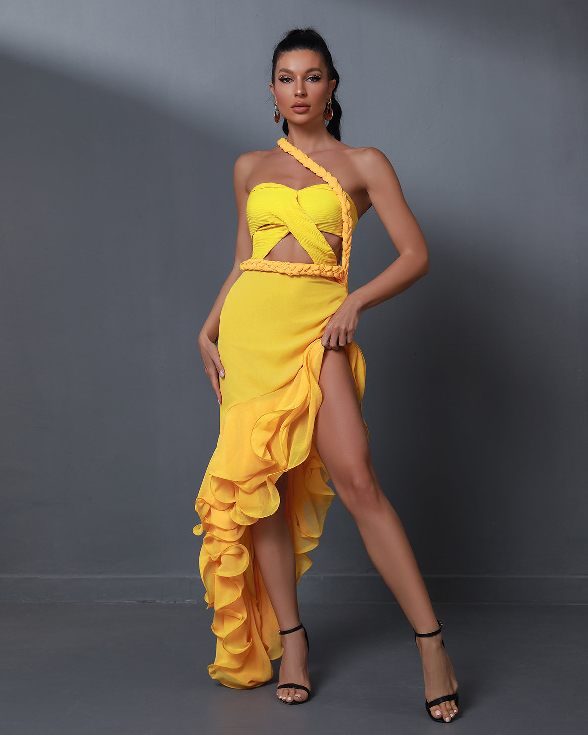 Fall in Jina with this gorgeous, sunny yellow strapless cutout gown! It's sure to brighten up any night out, while its figure-flattering design will have you feeling like the belle of the ball. Yell for Jina!