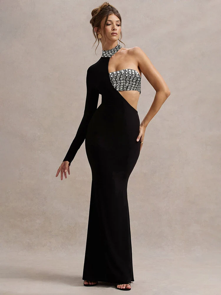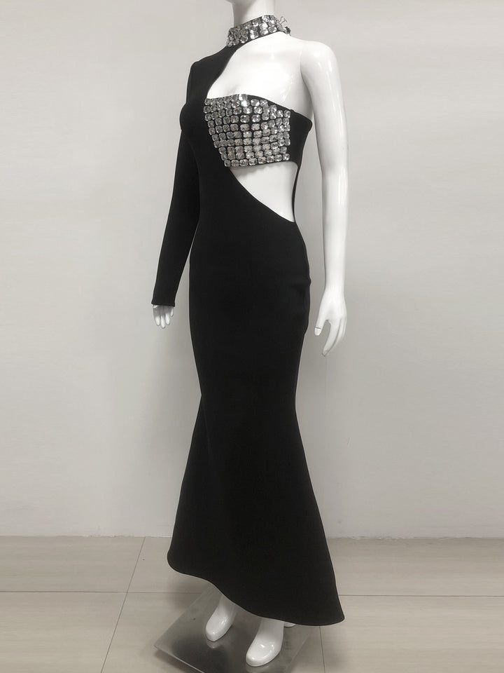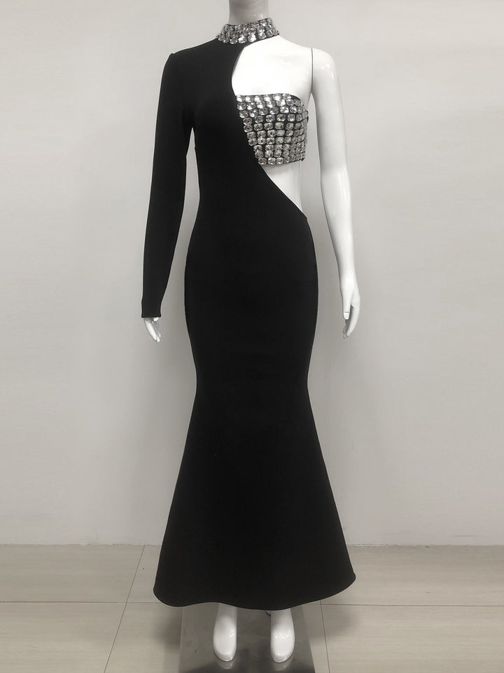 Crystal Asymmetric Cutout Fishtail Bandage Dress