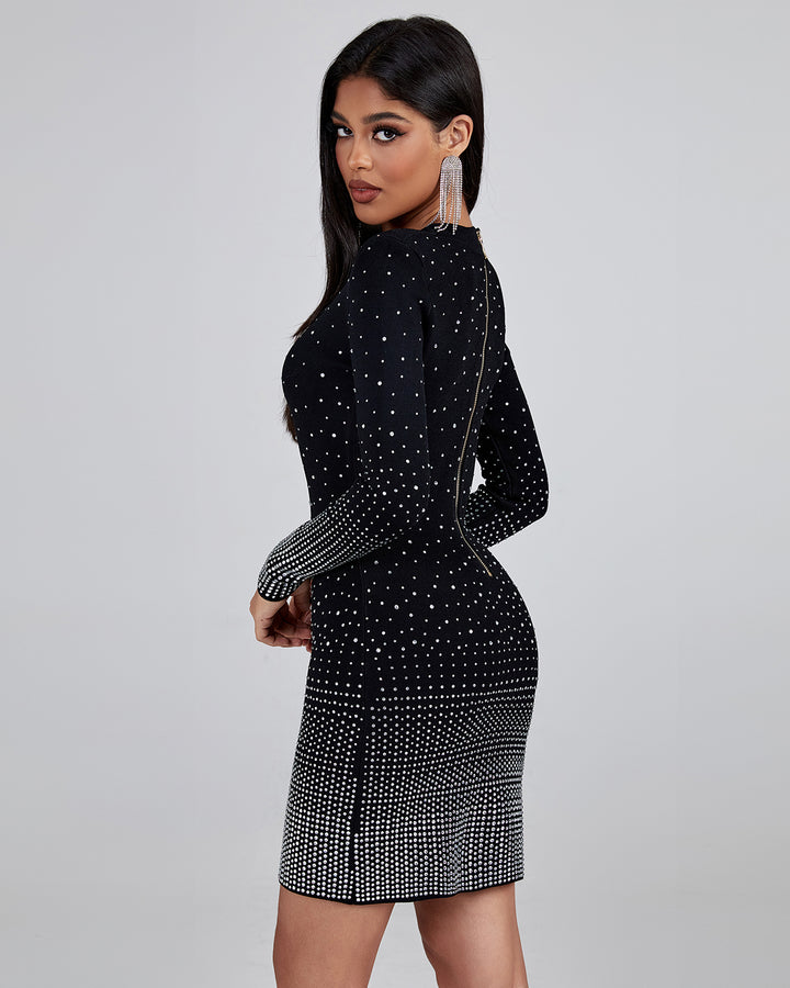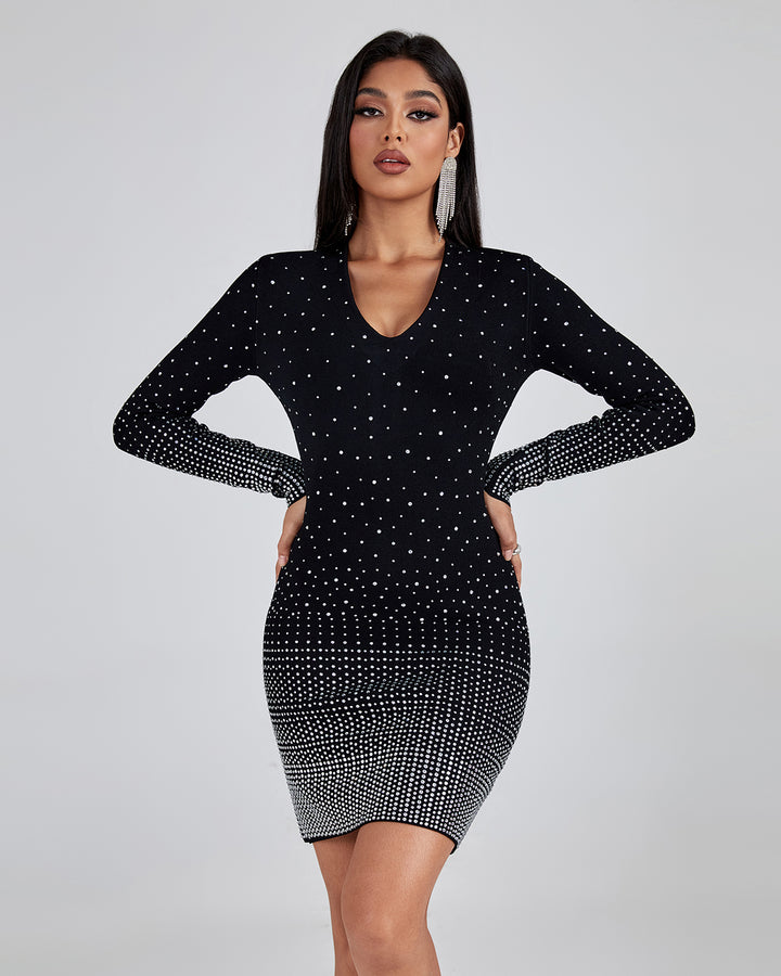 Showcase a timeless style with an edge of modernity in this V Neck Rhinestone Mini Dress. Crafted from luxurious materials, this elegant mini dress features a deep V-neck adorned with sparkling rhinestones creating a subtle yet sophisticated look. A perfect piece for any special occasion, this dress will have you looking and feeling like royalty!