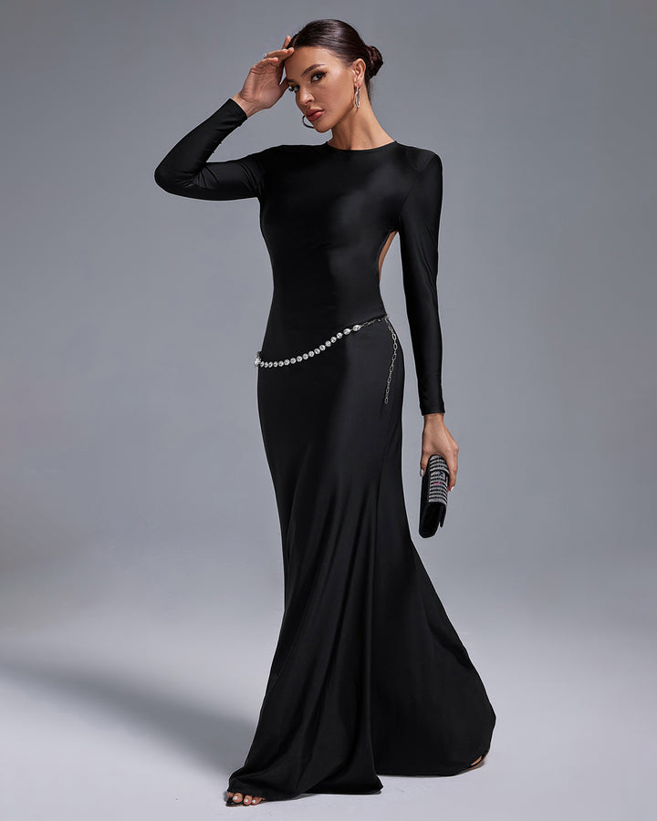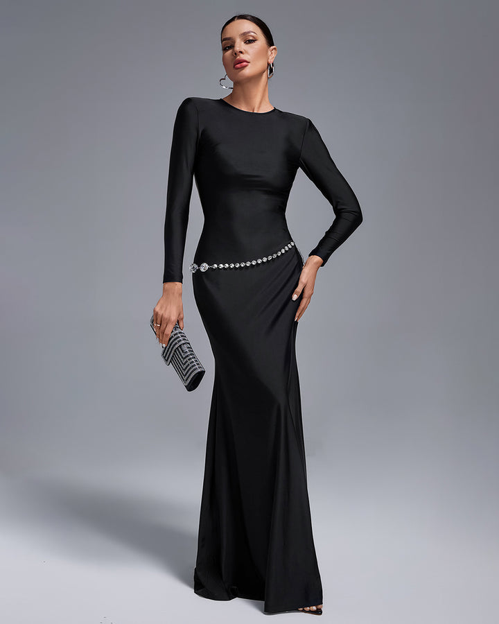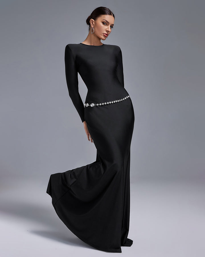 Dazzle in this Crystal Belt Backless Maxi Dress. The intricate crystal belt adds a touch of glamour to this backless design. Make a statement at any event with this luxurious dress that exudes elegance and sophistication. Perfect for those who appreciate the finer things in life.