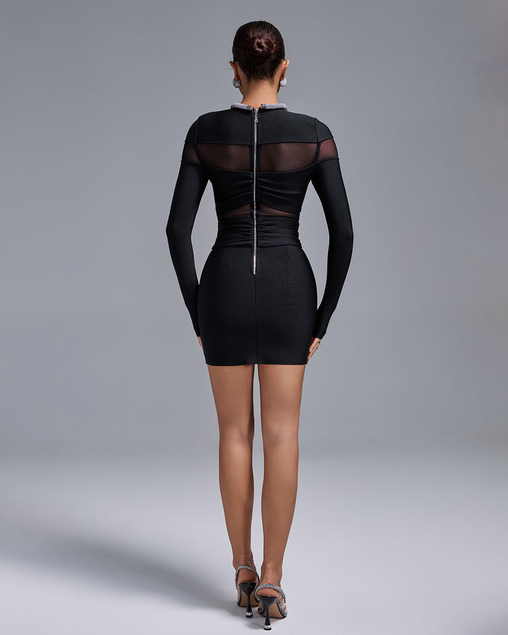 Rhinestone Neck-Ring Sexy Bandage Mini Dress