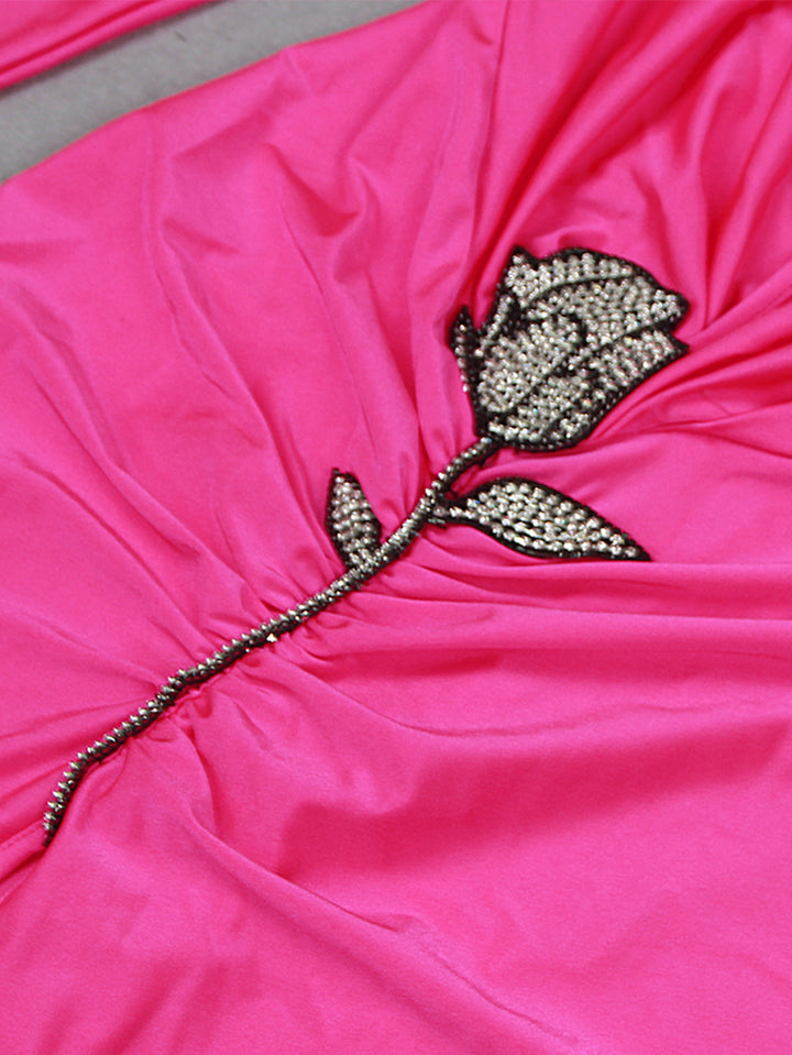 Round Neck Long Sleeve Rhinestone Maxi Bodycon Dress HL9432