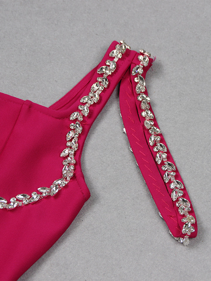 Strappy Sleeveless Rhinestone Over Knee Bandage Dress