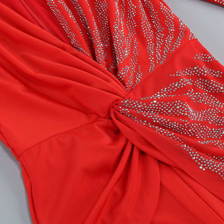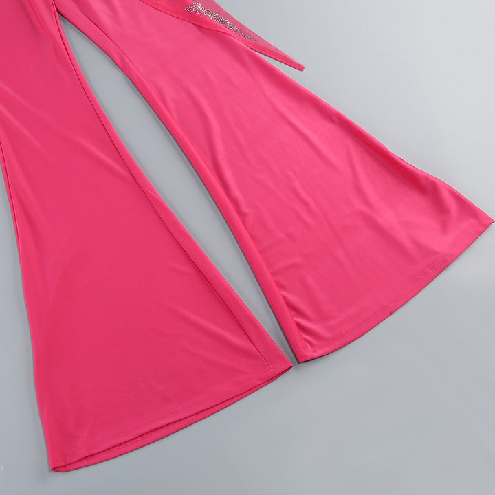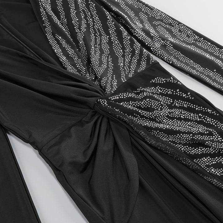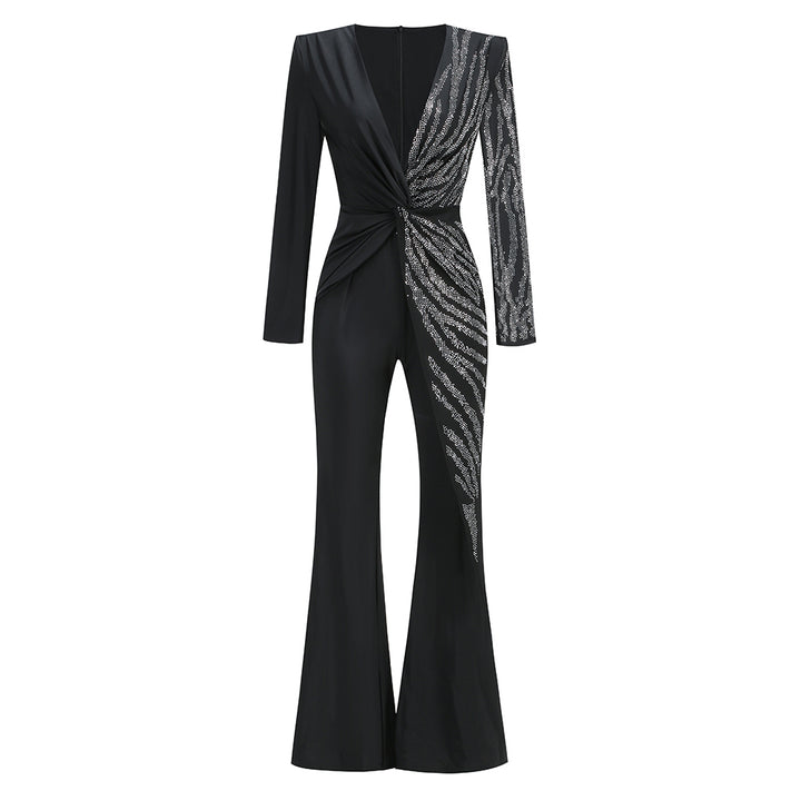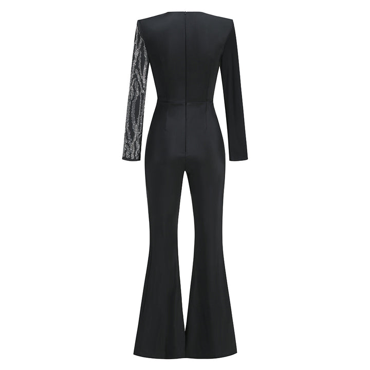 V Neck Long Sleeve Rhinestone Jumpsuit KLYF1105